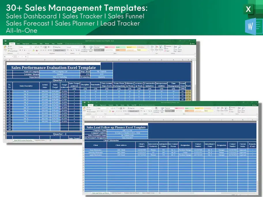 •Sales Tracker – Daily, Weekly, Monthly, Quarterly & Annually